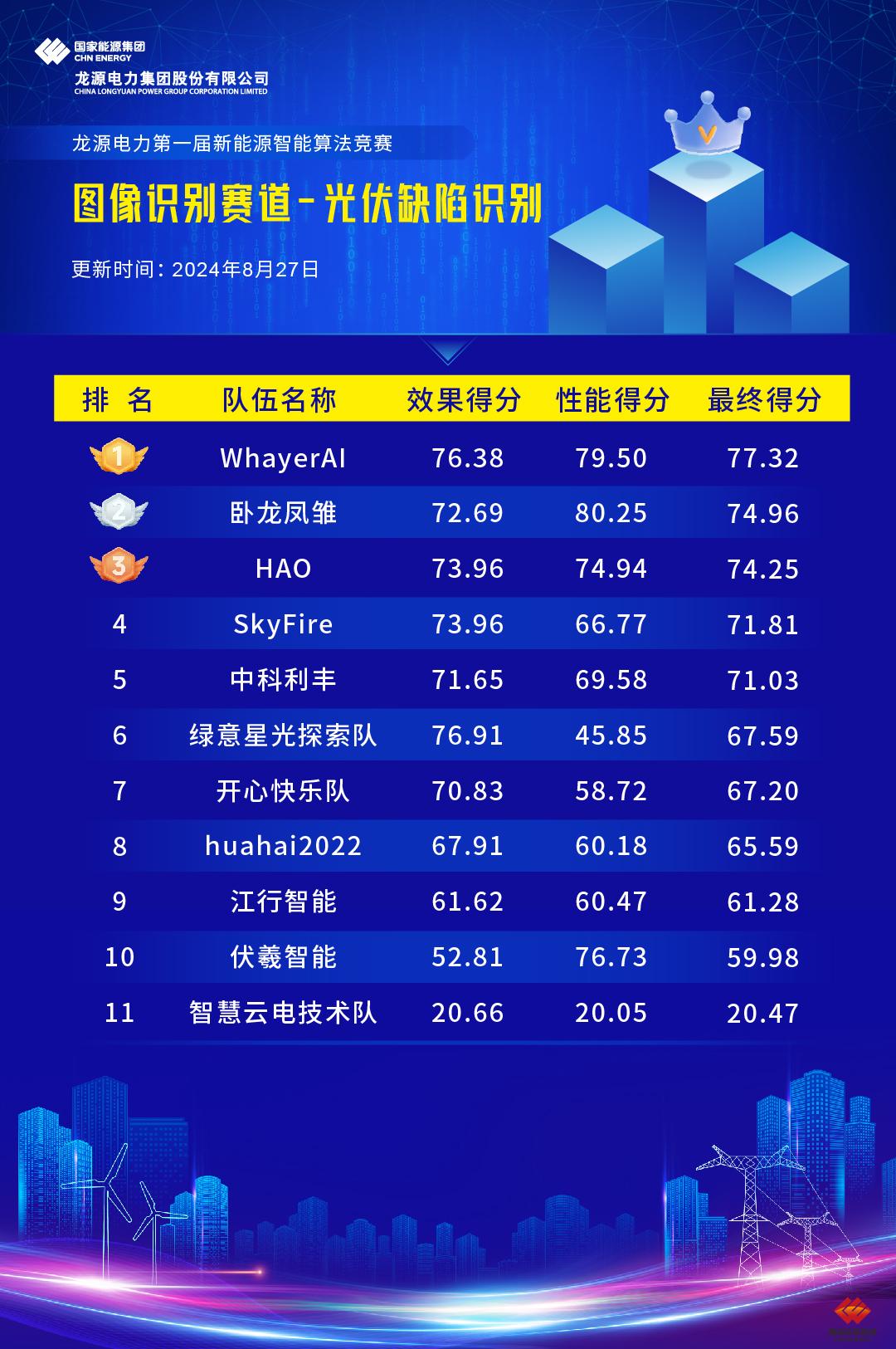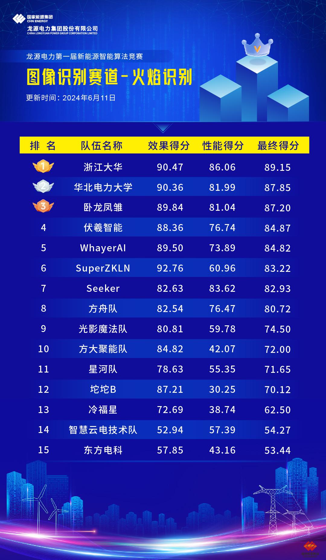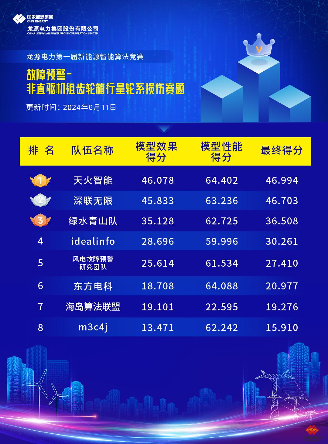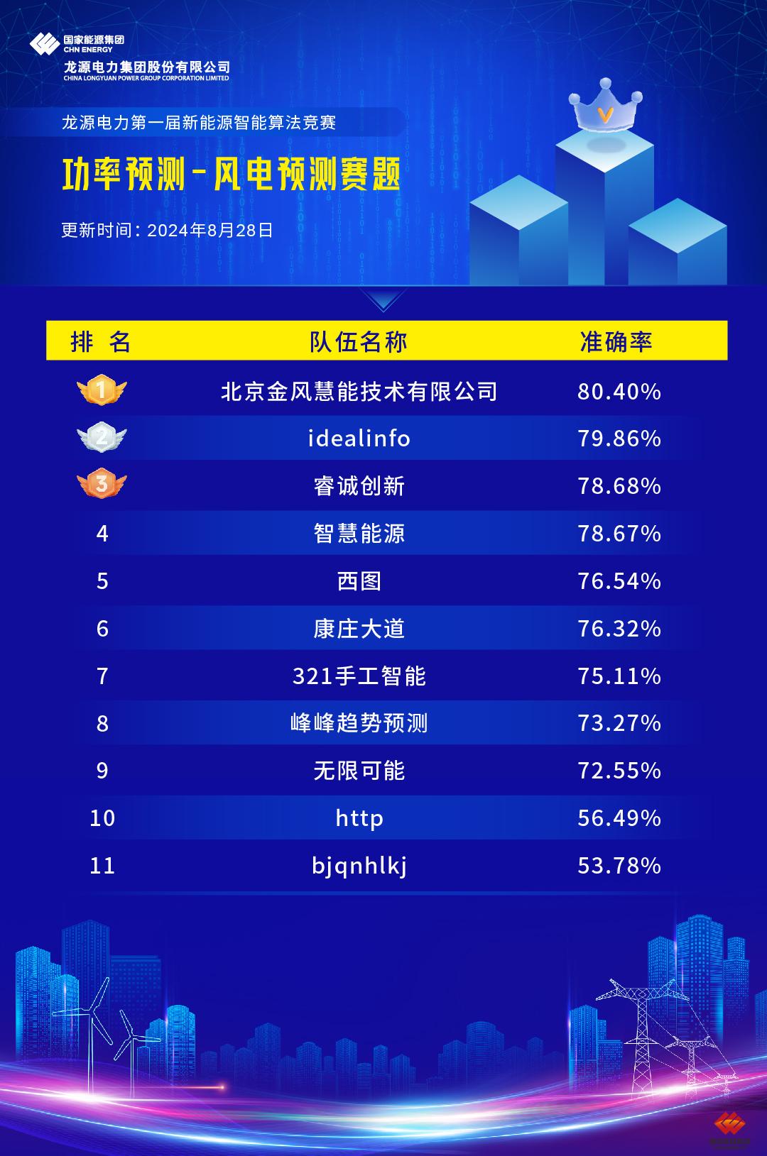 金年会电力第一届新能源智能算法竞赛成绩榜